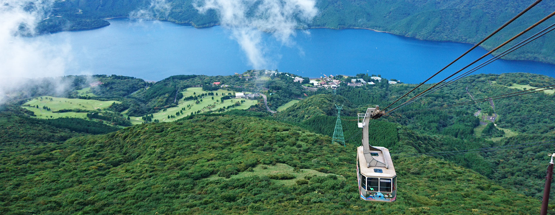 This ropeway runs 1,800m, traveling from Hakone-en Station on the shore of Lake Ashinoko to the Hakone Komagatake Summit Station at the top of the mountain in 7 minutes. From the summit you can see the magnificent Mt. Fuji to the north, as well as look out in the distance for a panoramic view of Suruga Bay and the Izu Peninsula, the Shonan coast, and the Boso Peninsula.