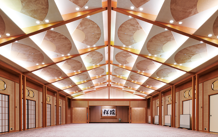 | This shoin-style banquet hall has a serene atmosphere. The stage (roughly 36.4㎡) is perfect for traditional events, receptions, exhibitions, etc. |