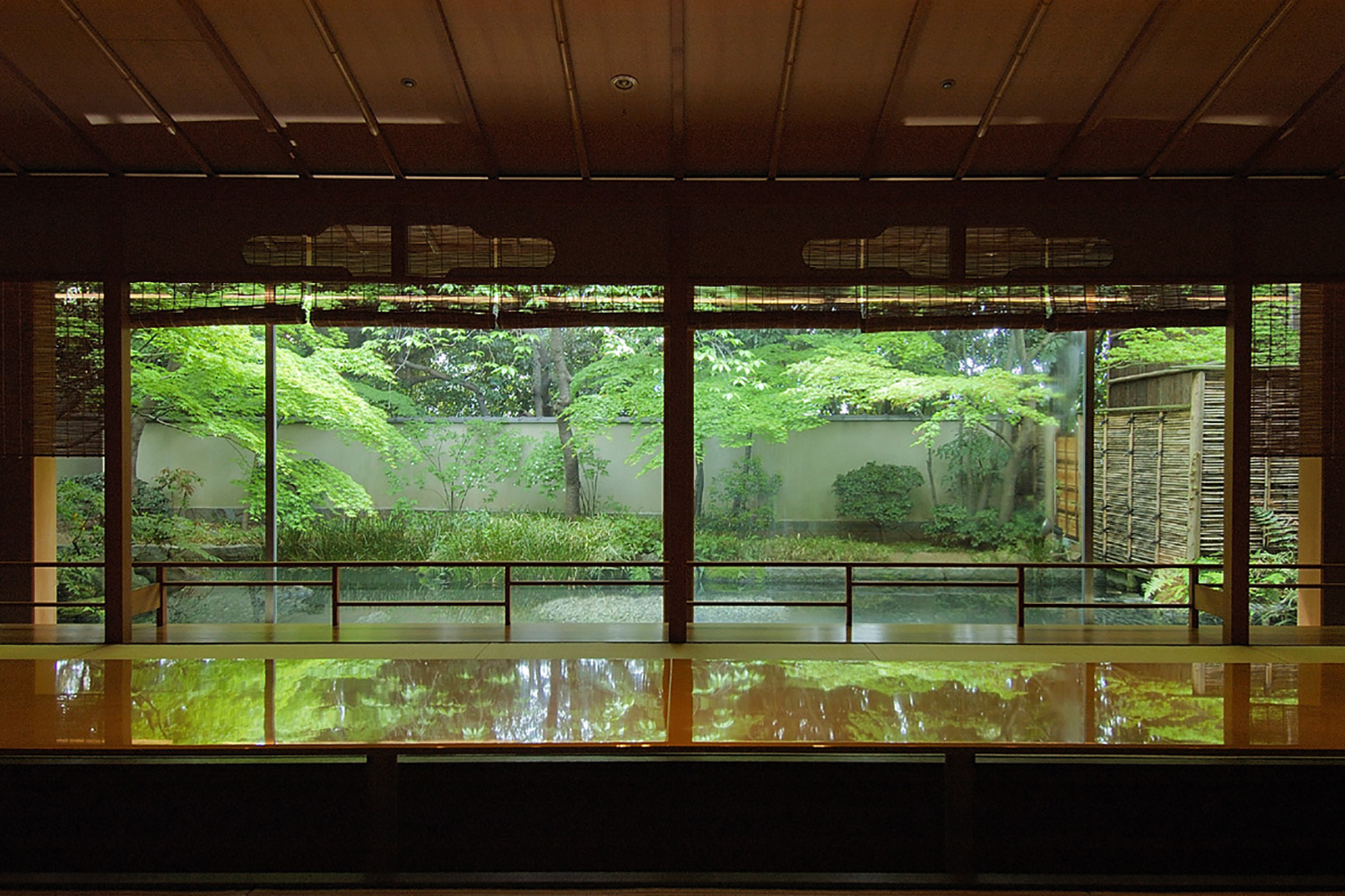 | This space is designed with a clear stream around the room. The ceiling gives the atmosphere of a pleasure boat. |