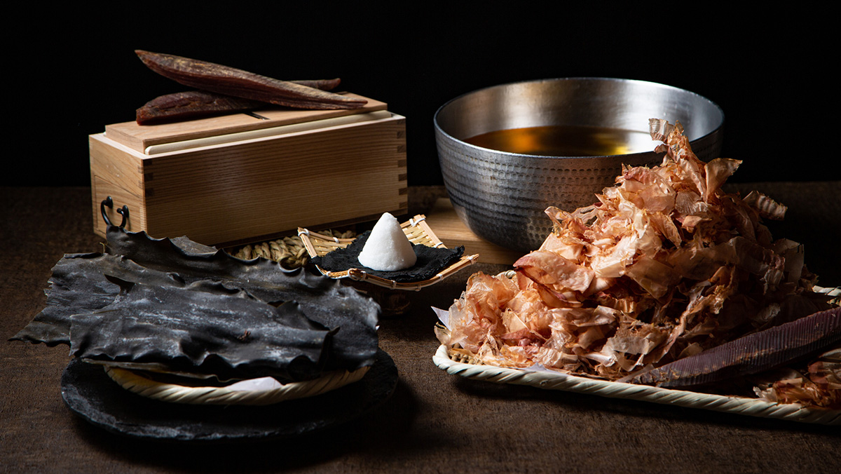上質な鰹節(本枯節や枯節など)を使用し、有栖川清水伝統の受け継がれた配合で、吸物出汁と煮物出汁に更に分けて使用しております。