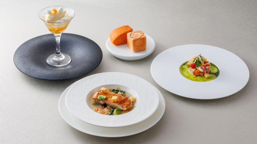料理長青木佑真が季節に合わせた食材を使い、前菜、温前菜、お魚料理、お肉料理、デザート5皿で構成されたコース料理を提供いたします。