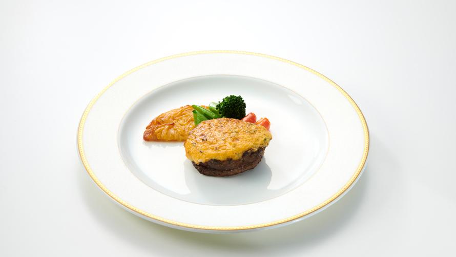 牛フィレ肉のステーキに茸のデュクセルを乗せ、ベアルネーズソースをかけて天火で焼き上げた料理。伝統的なフランス料理でもあり、グランドプリンスホテル高輪のトリアノンやご披露宴のメインとして代々引き継がれていた肉料理の一つ。