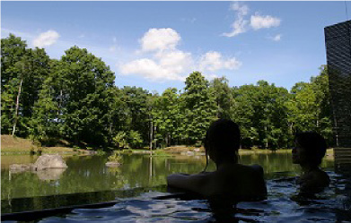 ホテル敷地内の源泉から届く豊富なお湯は、素肌に優しい単純温泉です。泉質はアルカリ性で疲労回復、神経痛、筋肉痛に効果があり、柔らかなお湯はお肌によく、湯上りは「すべすべつるつる」、いつまでも体はポカポカです。露天風呂から四季折々の景色が楽しめます。