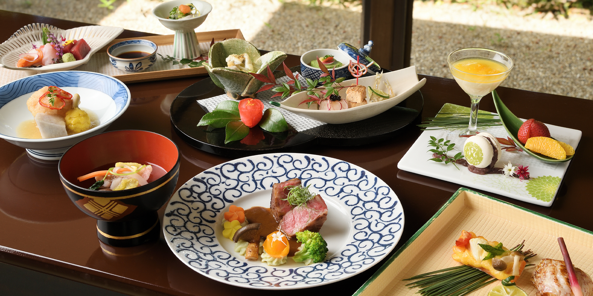 厳選食材を使用した懐石料理と壮大な日本庭園、
