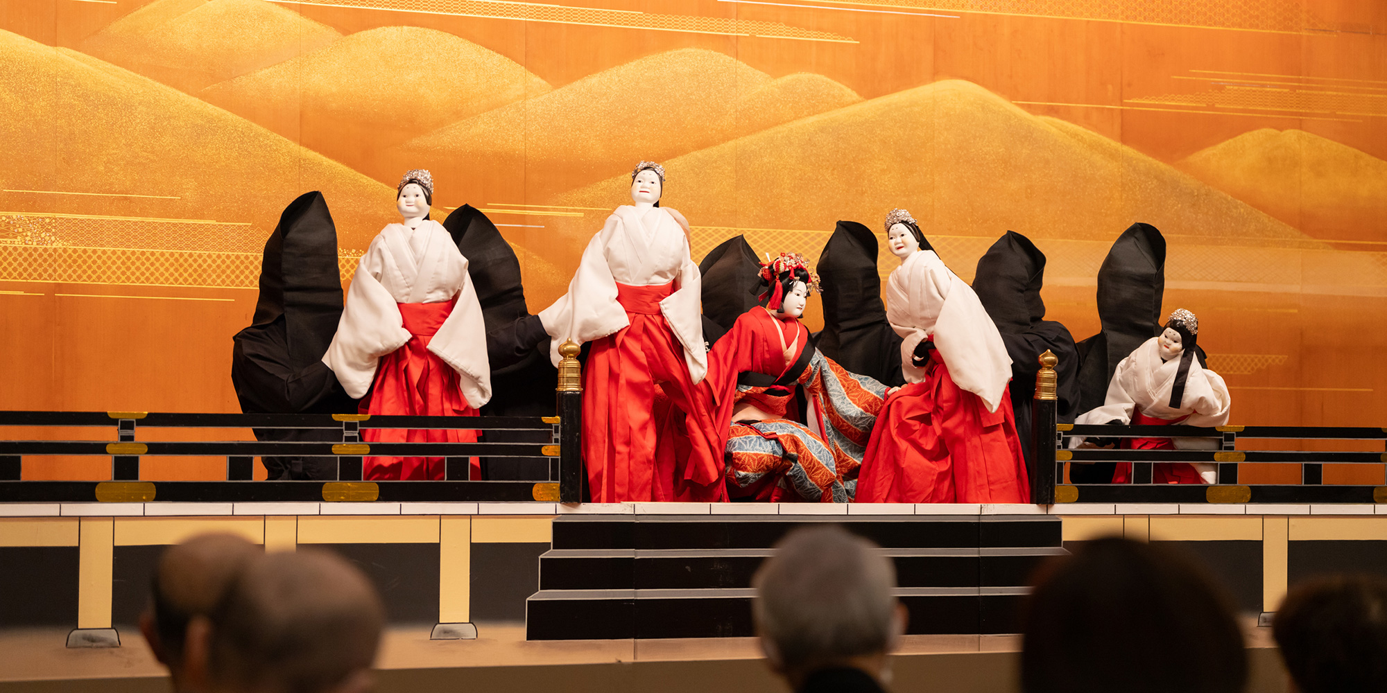 太夫と三味線が、緊迫した呼吸の積み重ねによって紡ぐ義太夫節の語りの中で、人形遣いによって生命を宿したように動く人形。“人形だから” こそ、観る人それぞれが思いを投影し、人間の俳優以上に感情移入ができるとも言われています。