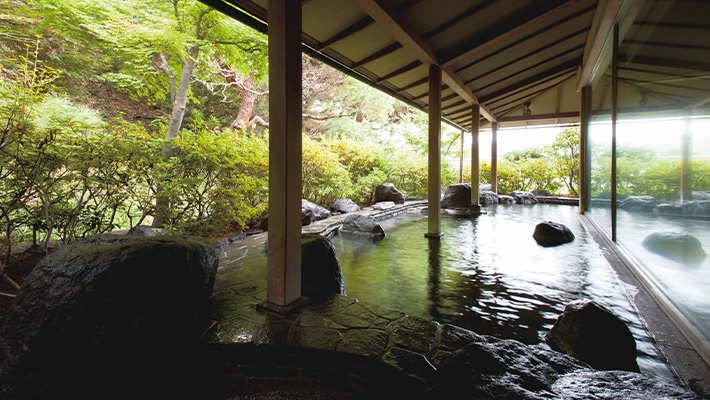 自然を愛でながら、やわらかな感触の湯に浸かれば心も身体もほぐれていきます。