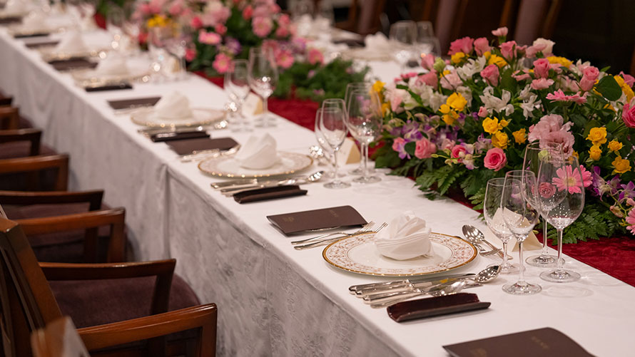 北海道の豊かな食材を使用したスペシャルコースには、ニトリレディスゴルフトーナメントに絡めたメニューの一部も登場予定。お客さま同士の交流もお楽しみいただけるよう、晩餐会スタイルでご用意いたします。ゴルフ話に花を咲かせる特別なひとときをお過ごしください。