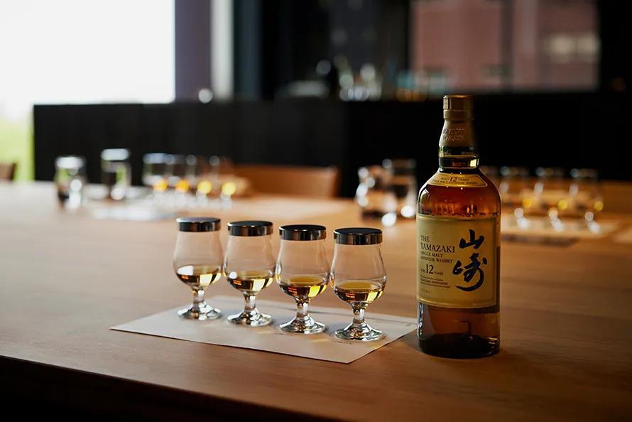 見学ツアー中には、サントリーシングルモルトウイスキー山崎12年や希少なモルトウイスキー原酒などのテイスティング体験も。