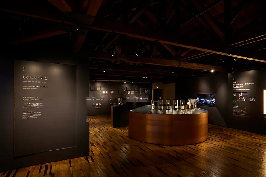 ウイスキー館では、日本のウイスキーの歩みを語りかける展示物や、多彩な原酒・ウイスキーが並ぶ圧巻のボトルライブラリーとともに、ショップ・テイスティングラウンジ(有料)もお楽しみいただけます。※ウイスキー館は貸し切りではございません。