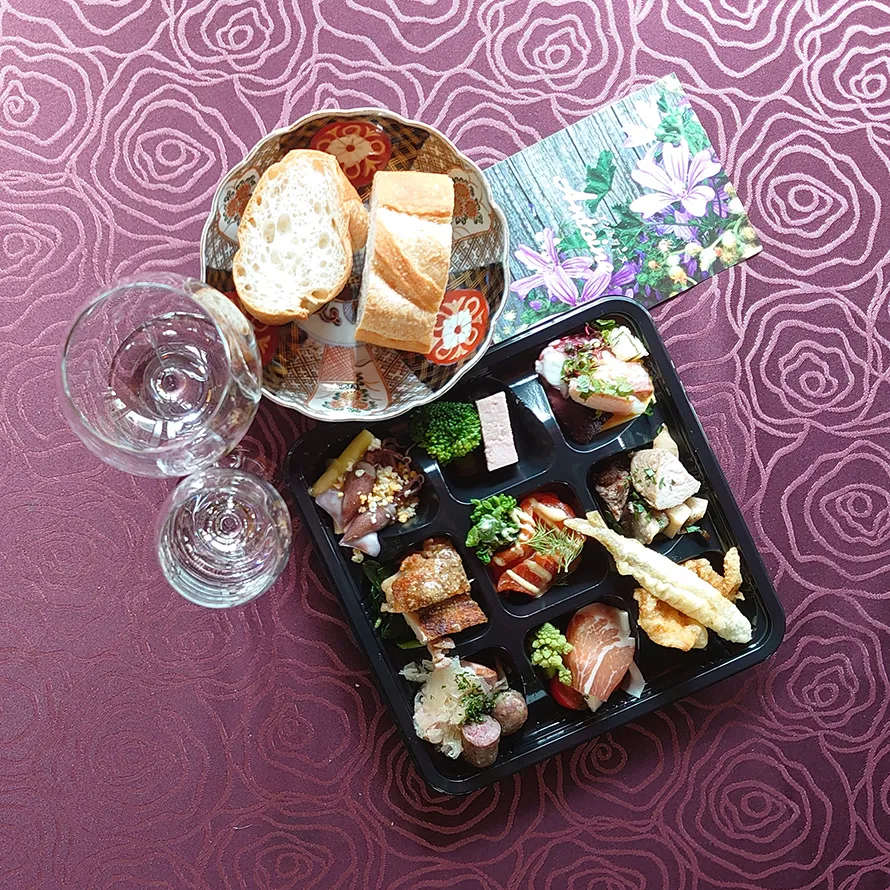 見学ツアーのあとには、ワインの試飲とランチボックスをご用意いたします。※写真はイメージです。