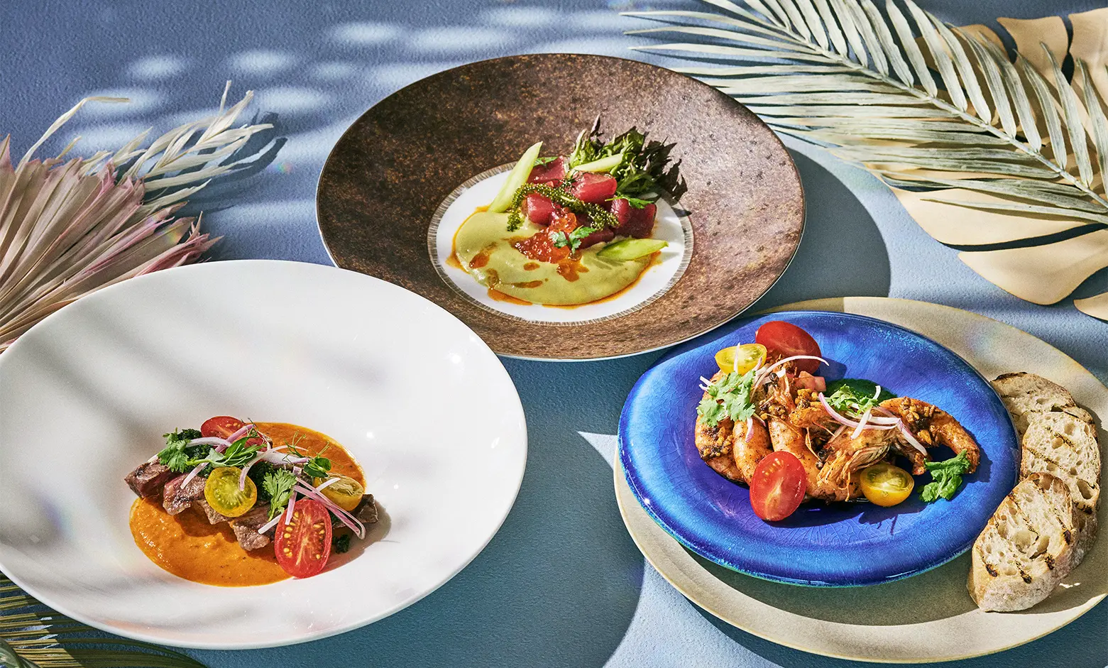 ロイヤルハワイアンのメインダイニング「Azure」とビーチフロントにあるレストラン&バー「Mai Tai Bar」より、オリジナルレシピで作る人気メニューなど3種をランチコースのメインディッシュでお楽しみいただけます。