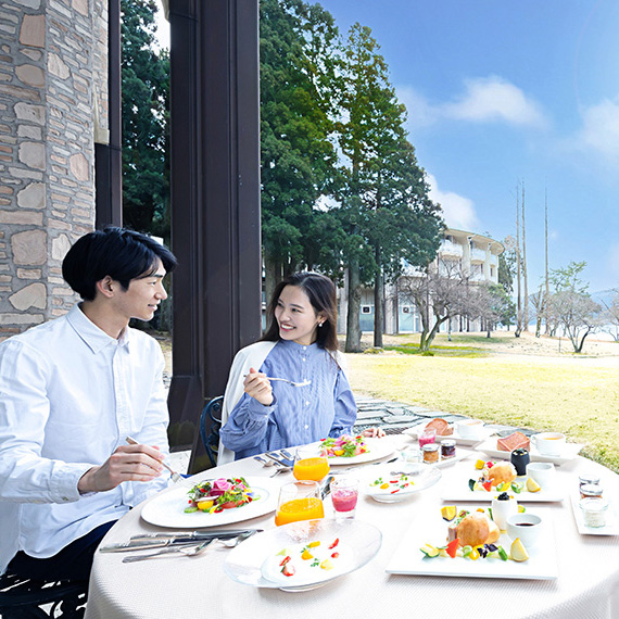 絶景テラスで朝食を