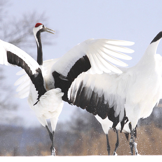 白銀の世界に舞うタンチョウを目の前で。