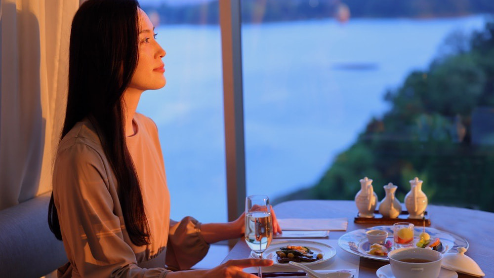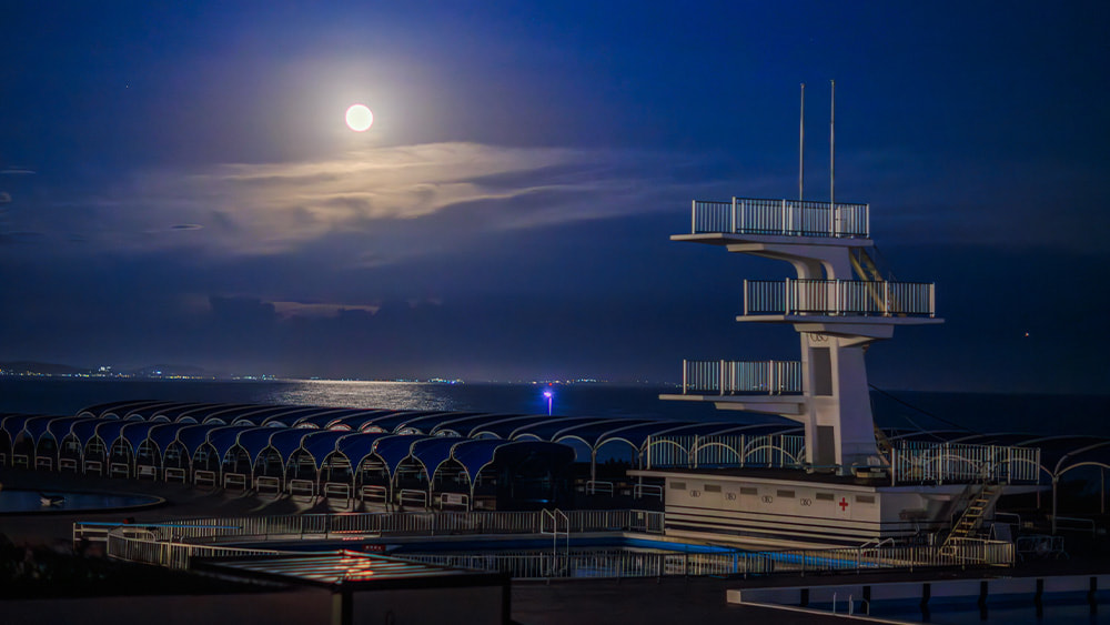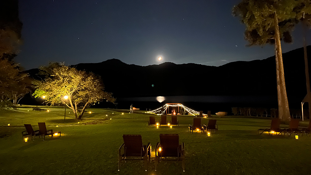 昼も夜も、秋の湖畔で月明かりとともに心豊かなひとときを。