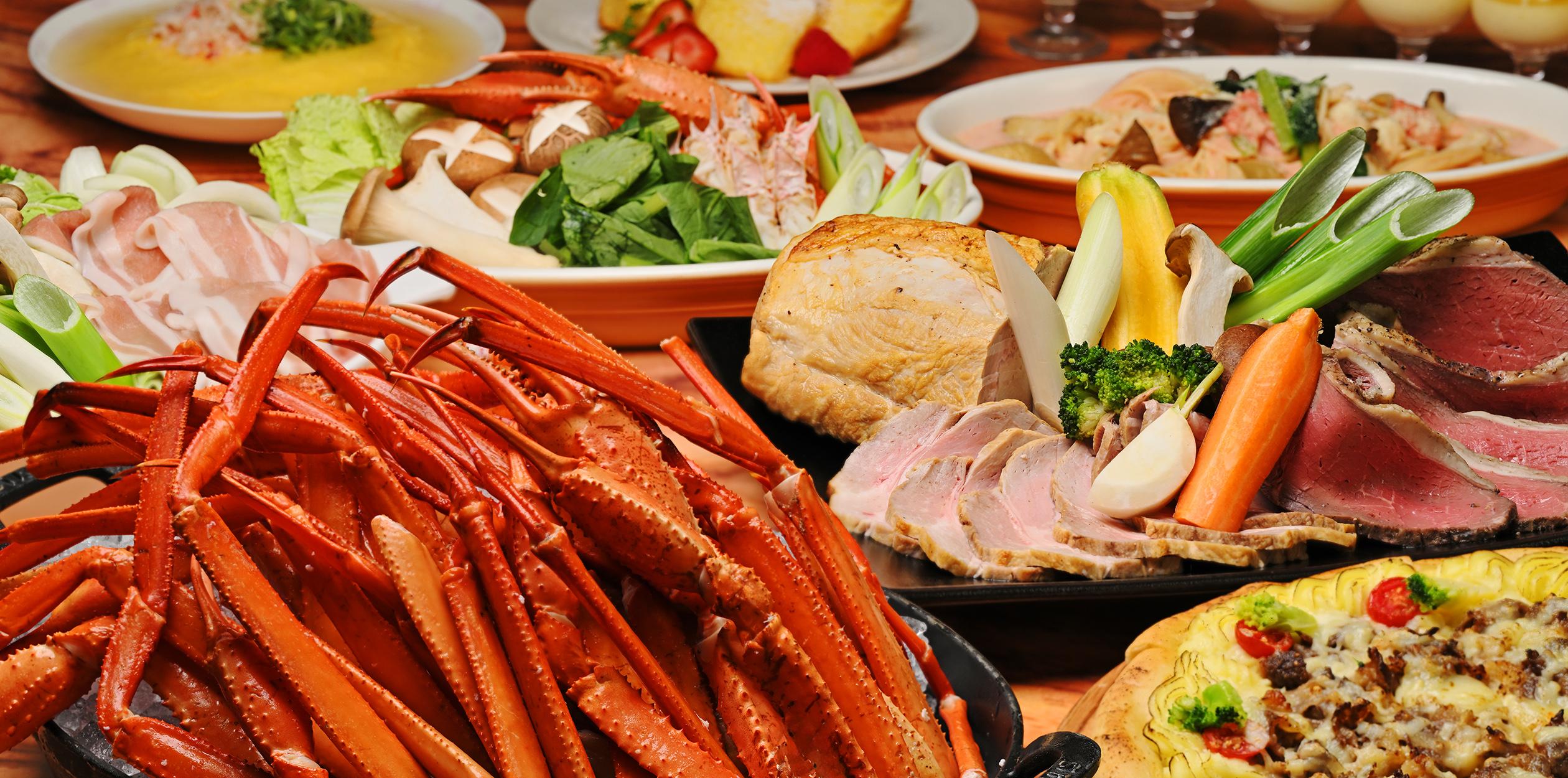 蟹や牡蠣、冬らしく温かな料理を食べ放題で