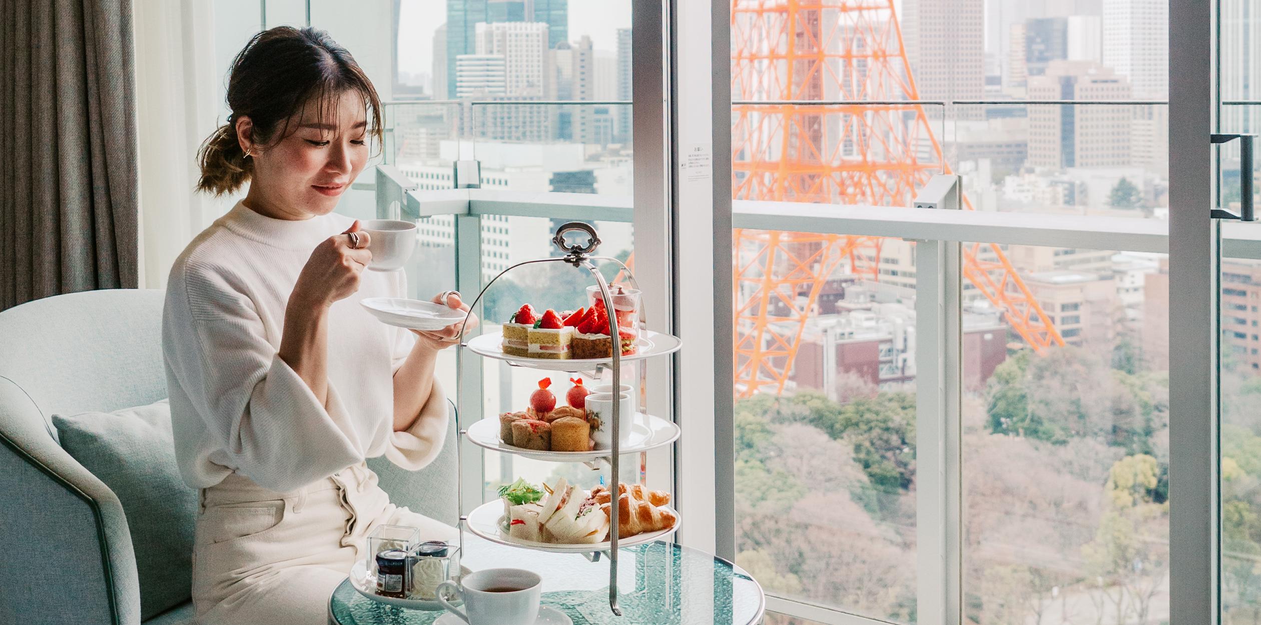 インルームダイニングでお食事を。お部屋をデイユースでご利用いただけるプランもございます。