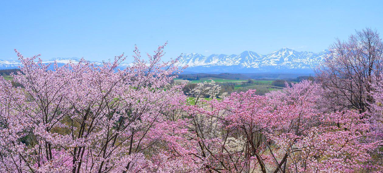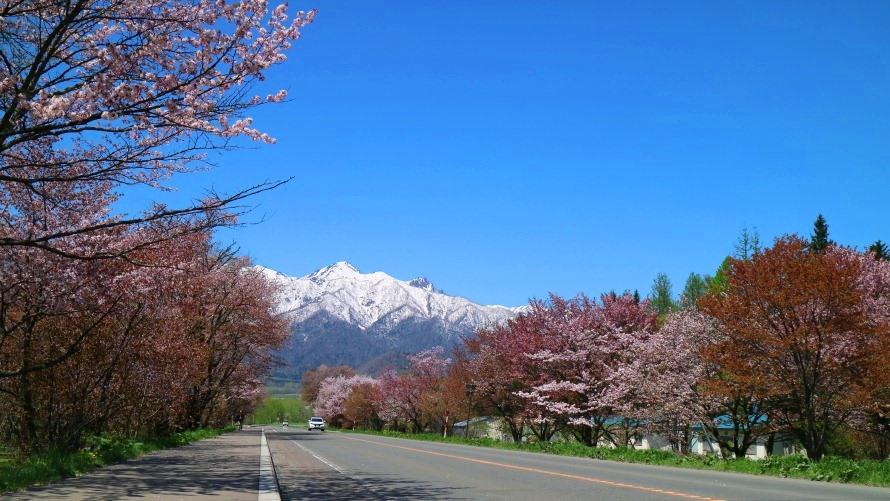 残雪が美しい山々の裾野に広がる新緑の大地。雄大な自然に咲き誇る「桜」や「春野菜」がおいしい季節です。