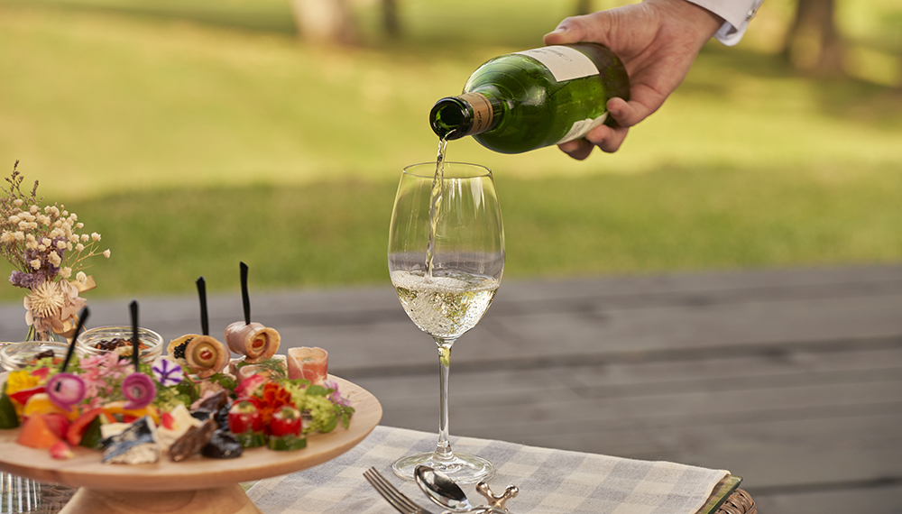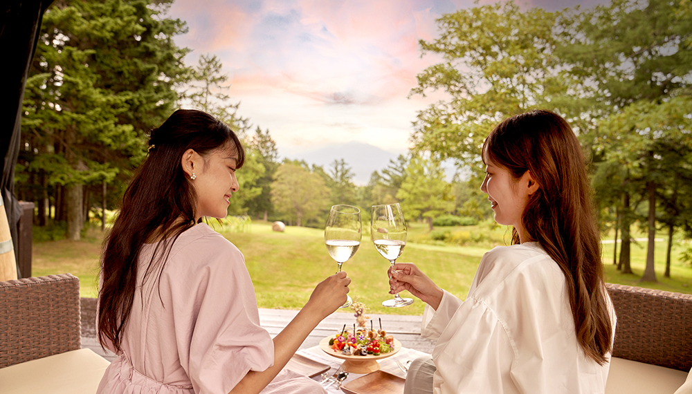 焚き火を囲んで、シニアソムリエが厳選した富良野産ワインと料理長監修による「ふらのチーズ」や秋の道産食材をふんだんに使用したオードブルをご堪能ください。