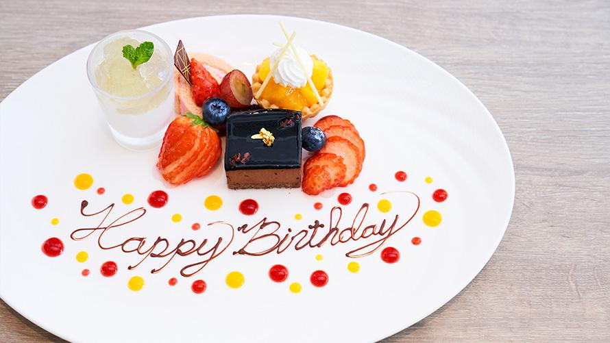 レストランでのお食事後には、アニバーサリープレートもご用意しております。お子さまのお誕生日など、ご家族でのお祝いにぜひご利用ください。