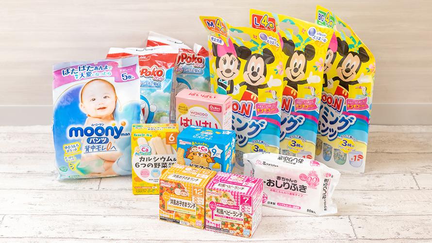 おむつや粉ミルクなどの少量パックや、離乳食お菓子類を販売しております。