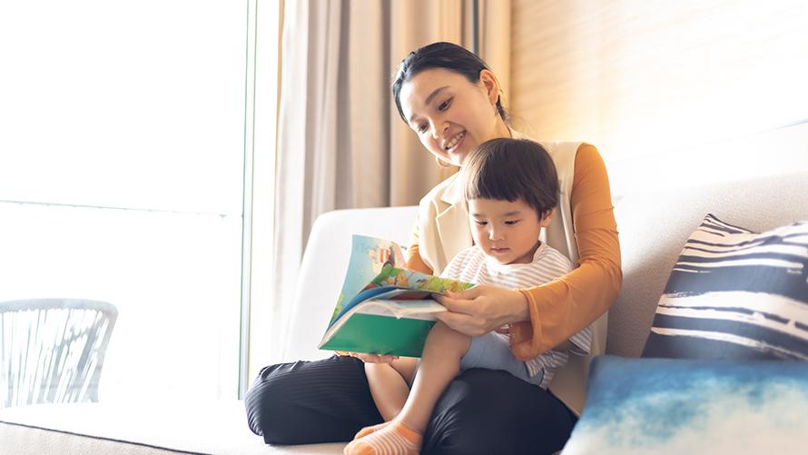壁面の紅型アートが楽しい「キッズルーム」では、靴を脱いでリラックス。DVDをみたり絵本を読んだり、ホテル内で気分転換しながら、お子さまも楽しくお過ごしいただけます。