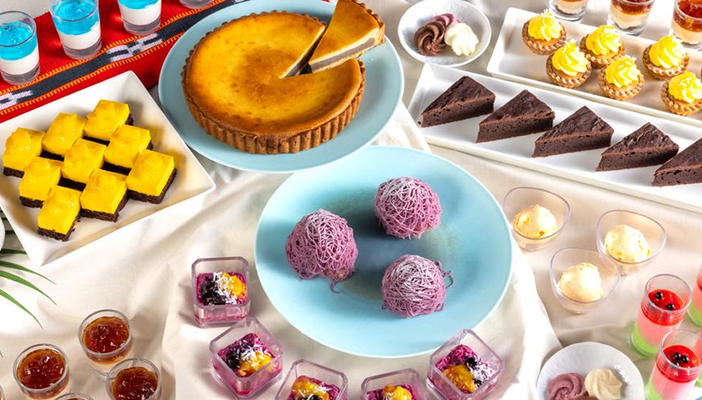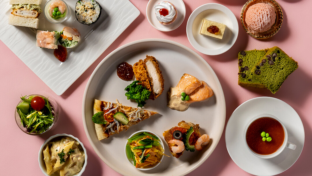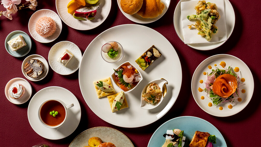 ランチでは、もずくや島豆腐を使った和テイストの前菜や、人参ムースとズワイガニのリエットなど、軽やかに楽しめる一皿を。ディナーでは、伊平屋島産黒糖でマリネしたノルウェーサーモンを炭火で香ばしく仕上げ、シークヮーサー香るドレッシングで爽やかに。ブイヤベースやパエリア、柔らかく煮込んだ豚バラのコンフィなど、多彩な温製料理もラインナップ。デザートは、目の前で仕上げる生絞りモンブランや金柑パンナコッタなど、心ほどける冬の味わいをお届けします。
