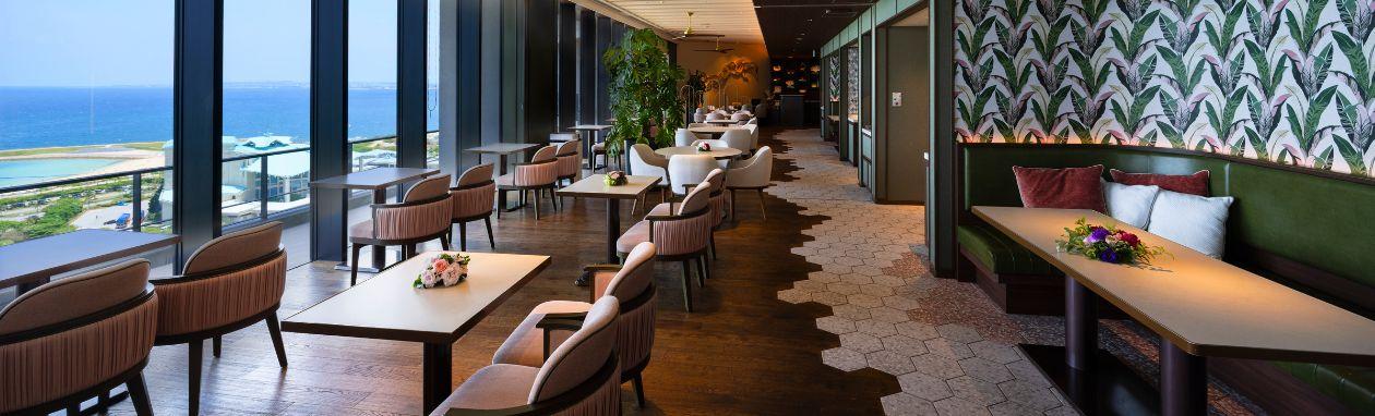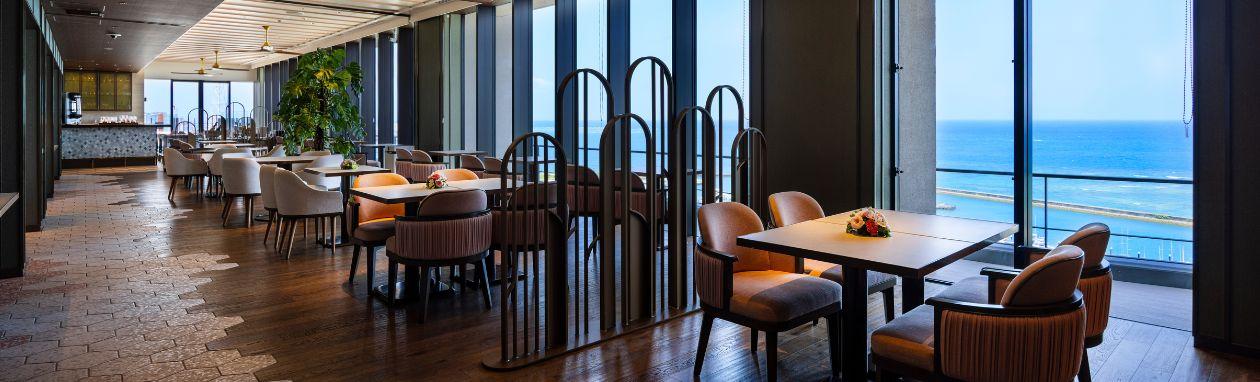 クラブフロアにご宿泊のお客さま専用でご利用いただける、最上階ラウンジ「UMIKAJI(ウミカジ)」。まるで天空に浮かぶようなプライベート空間は、喧騒から離れた特別なひとときをご提供いたします。