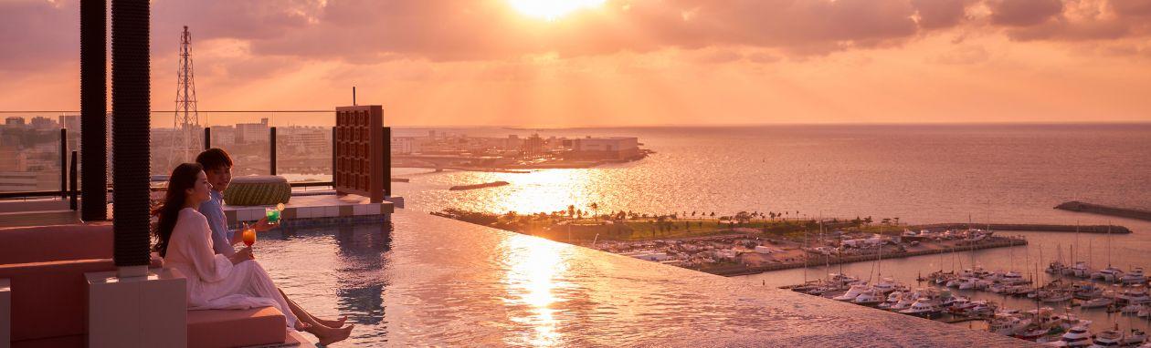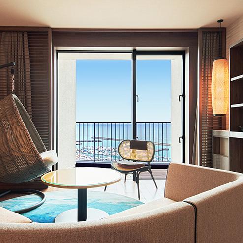その名のとおり、海風を感じる専用インフィニティプールを備えた唯一無二の空間からは、サンゴ礁の広がる美しい海と、沈みゆく夕陽が織りなす“沖縄マジックアワー”を望むことができます。