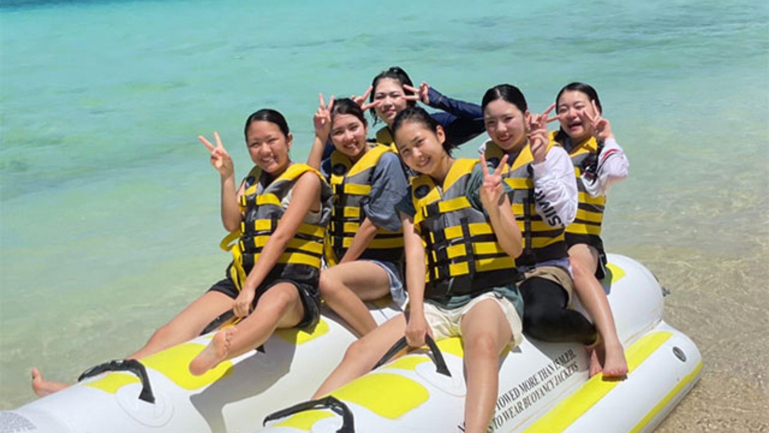 遊泳エリアのすぐ外ではモーターボートでけん引するバナナボートなどもお楽しみいただけます。