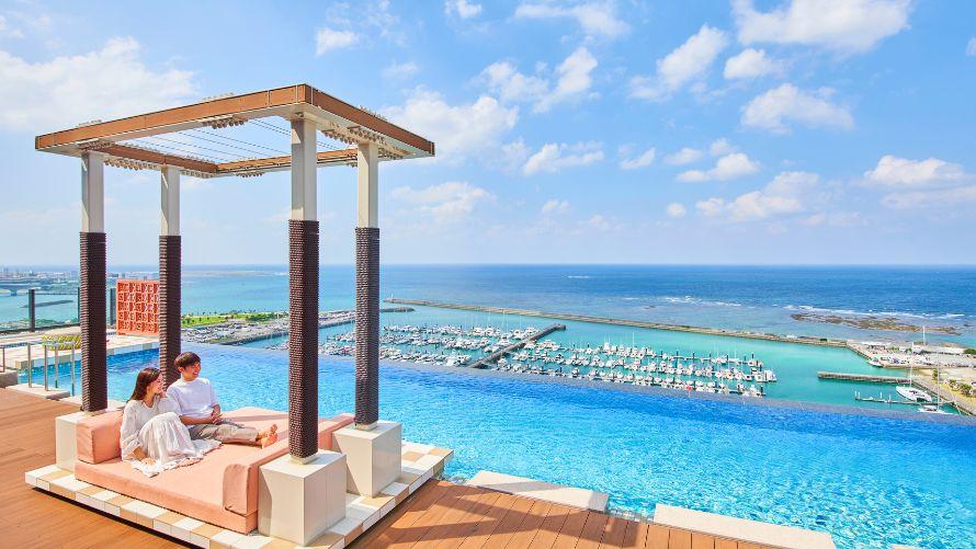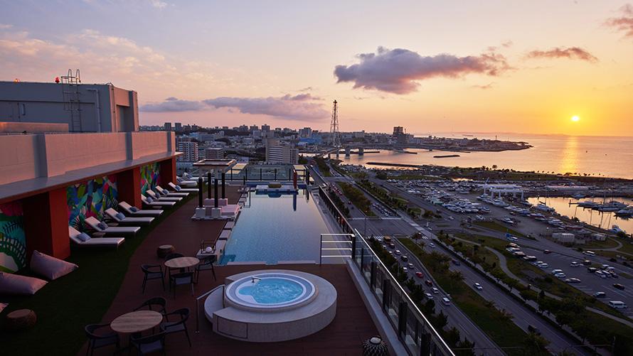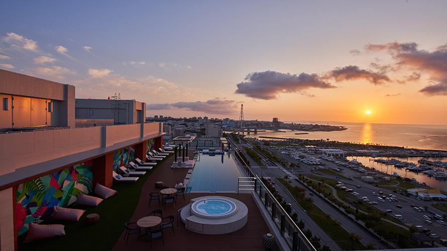 その名のとおり、海風を感じる専用インフィニティプールを備えた唯一無二の空間からは、サンゴ礁の広がる美しい海と、沈みゆく夕陽が織りなす“沖縄マジックアワー”を望むことができます。