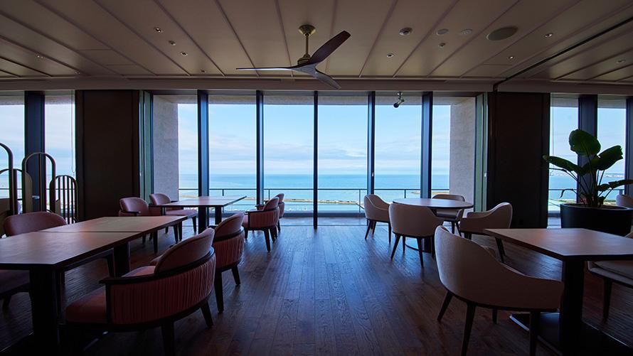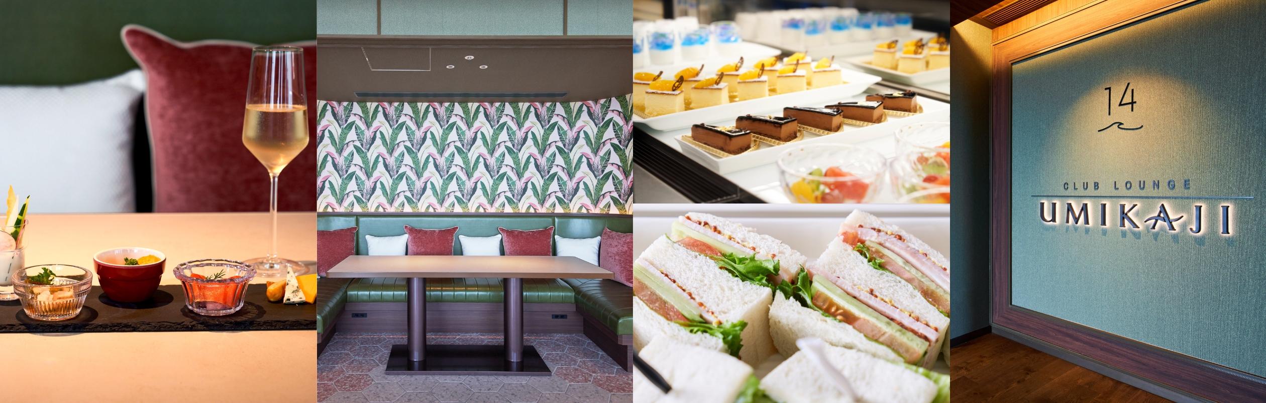 クラブフロアにご宿泊のお客さま専用でご利用いただける、最上階ラウンジ「UMIKAJI(ウミカジ)」。まるで天空に浮かぶようなプライベート空間は、喧騒から離れた特別なひとときをご提供いたします。