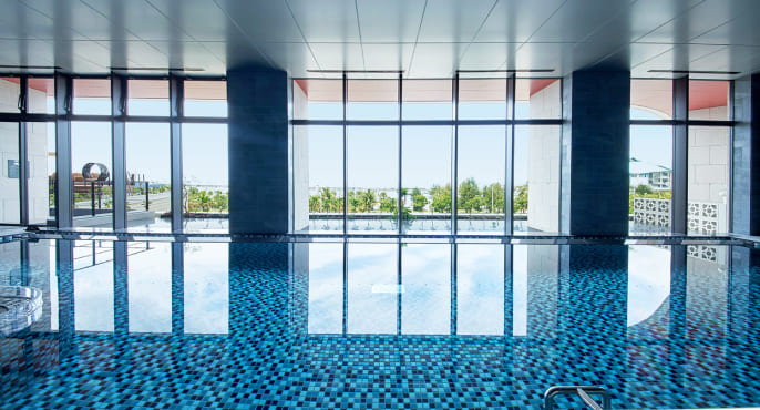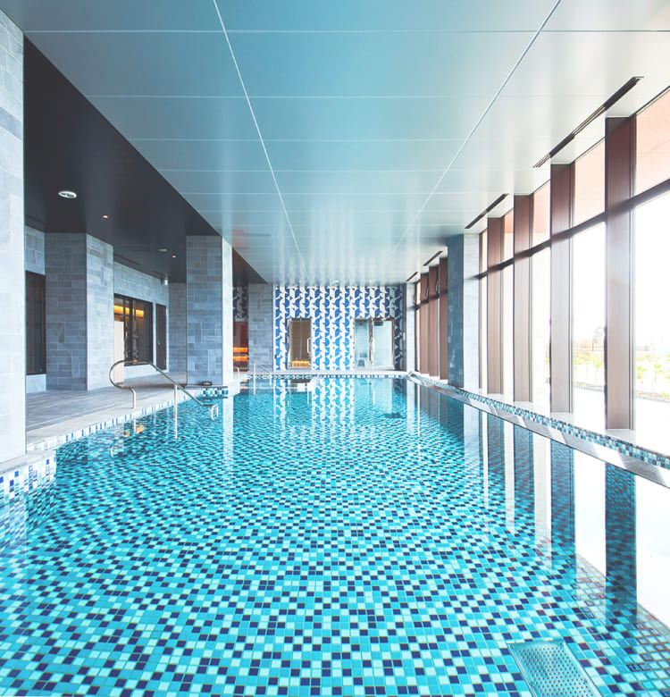 温水なので一年中いつでも泳げます。ラグジュアリーなリゾート体験をお楽しみください。