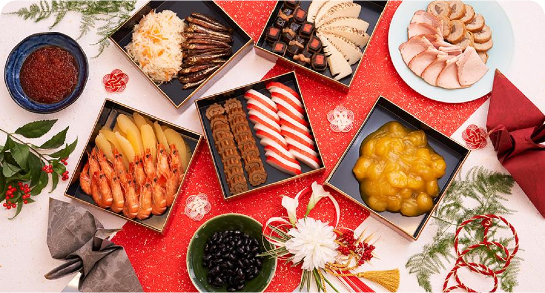 彩り豊かなおせち料理や、スイーツで、新春の祝福にふさわしい特別な時間をお楽しみください。