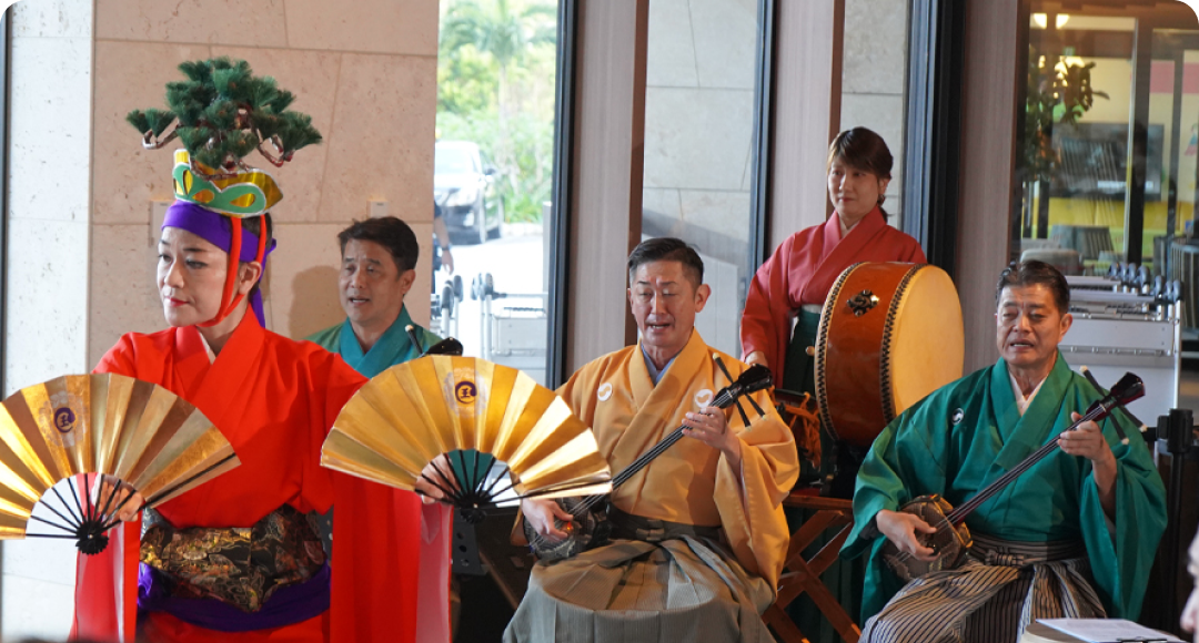 沖縄古典芸能である琉球舞踊と歌三線や沖縄独特の獅子舞の演舞をお楽しみください。