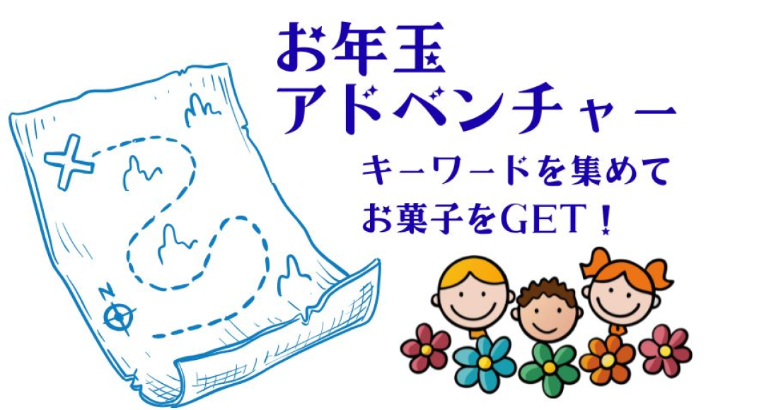 ロビーにかくされたキーワードをさがして文章にチャレンジ!見つけたらおいしいお菓子がもらえるよ!ご家族といっしょに楽しい時間を過ごそう。