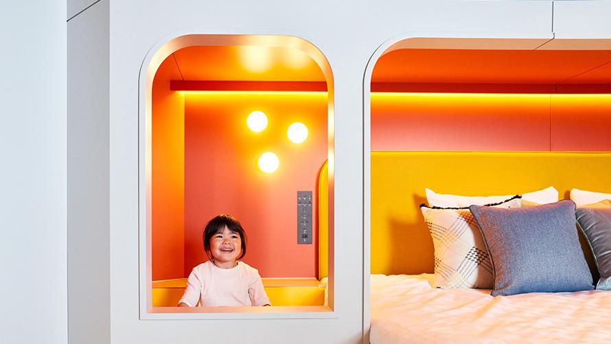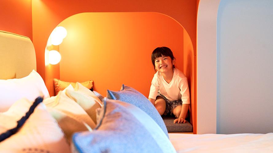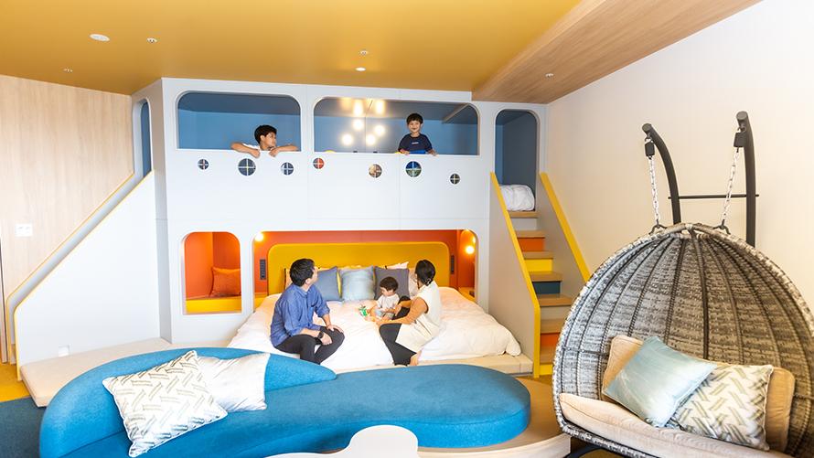 秘密基地イメージした室内には、2段ベッドやお子さまが遊べるスペースを設けました。 家族でテーブルを囲みながら、かけがえのない時間をお過ごしください。
