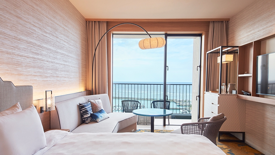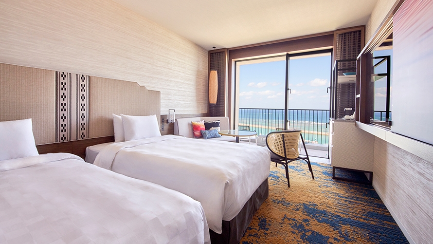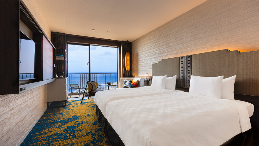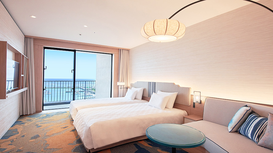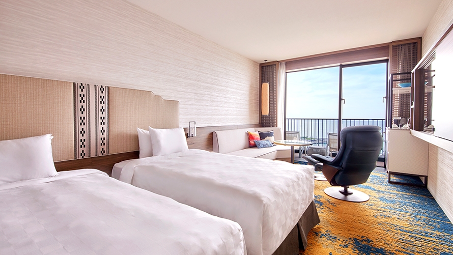 スーペリアフロア南側 3・4Fの客室です。トランドルベッドのご使用により3名さままでのご利用が可能です。さわやかな海風を感じながらのご滞在をお楽しみください。