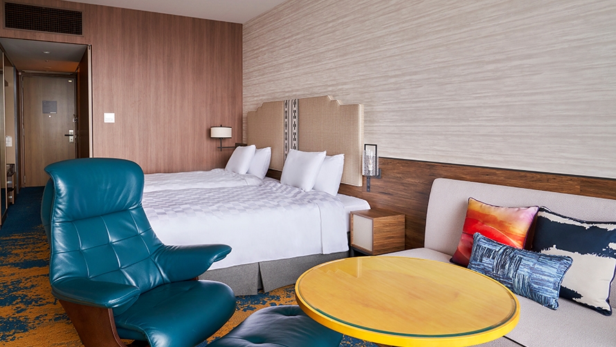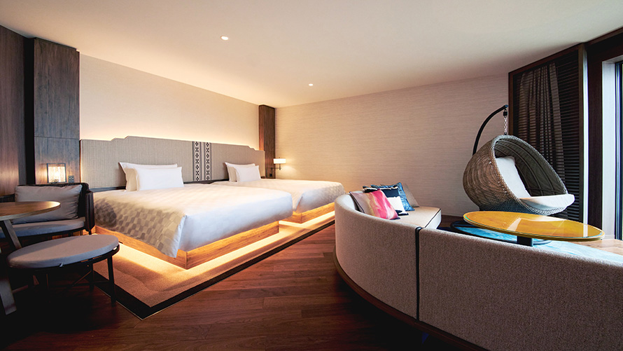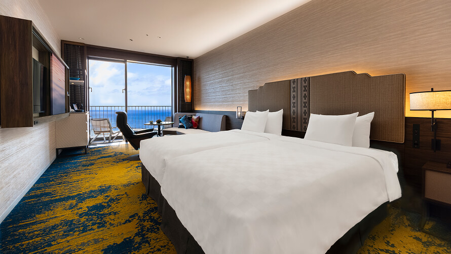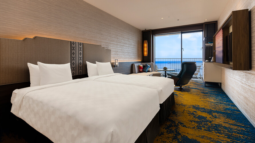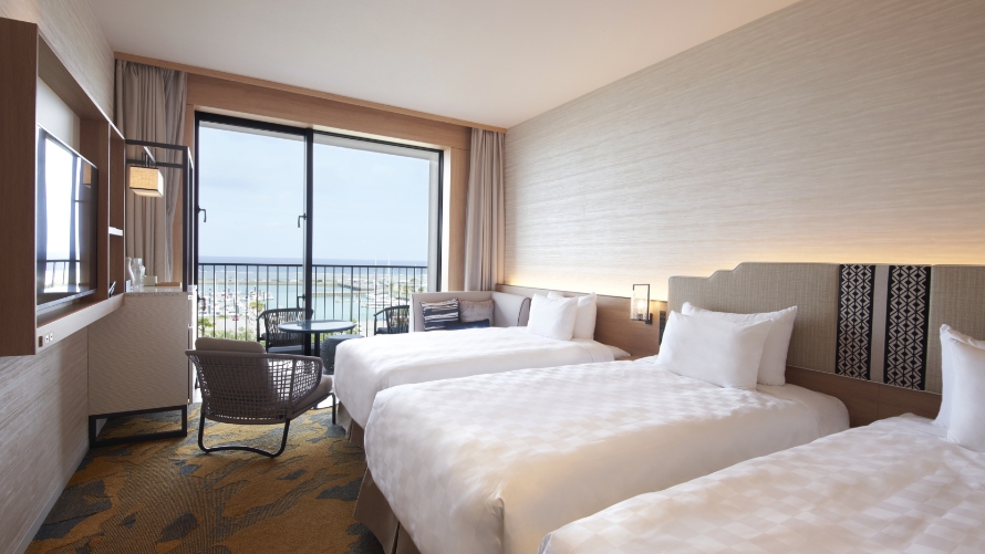 3名さまでのご利用も可能なスーペリアフロア5~11Fの客室。雄大な景色とさわやかな風を存分にお楽しみください。