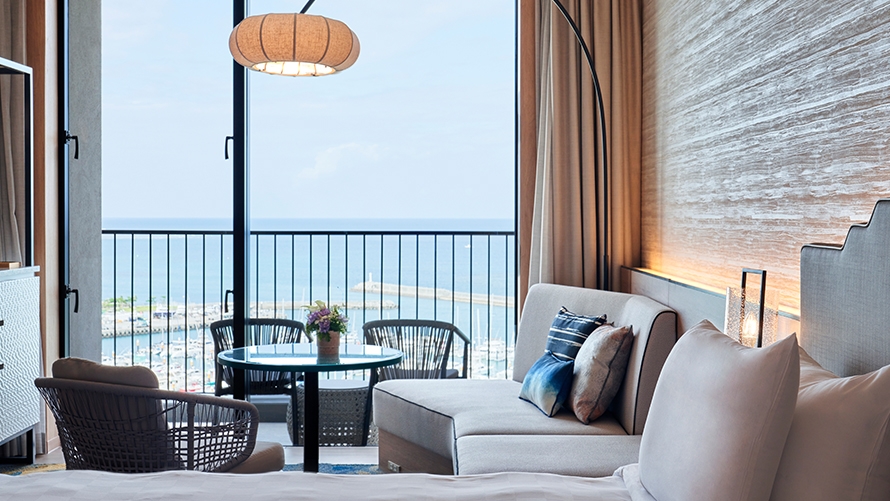 クラブフロア12・13Fに位置する50㎡の上質なしつらえの客室。上層階からの景色とさわやかな風を存分にお楽しみください。