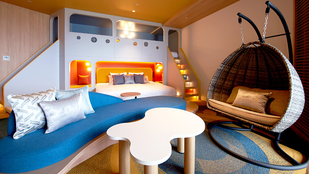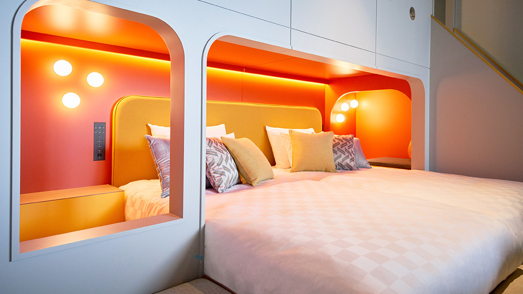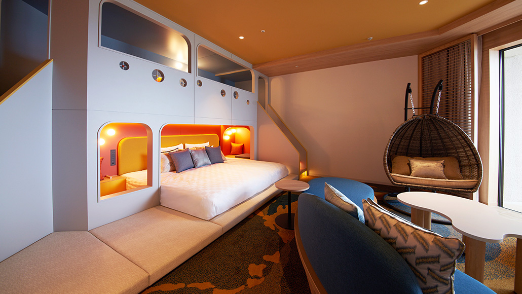 スーペリアフロア5~9Fに位置するツインベッドのフロアの中二階に2段ベッドを備えた、お子さま連れのファミリーに最適な客室です。