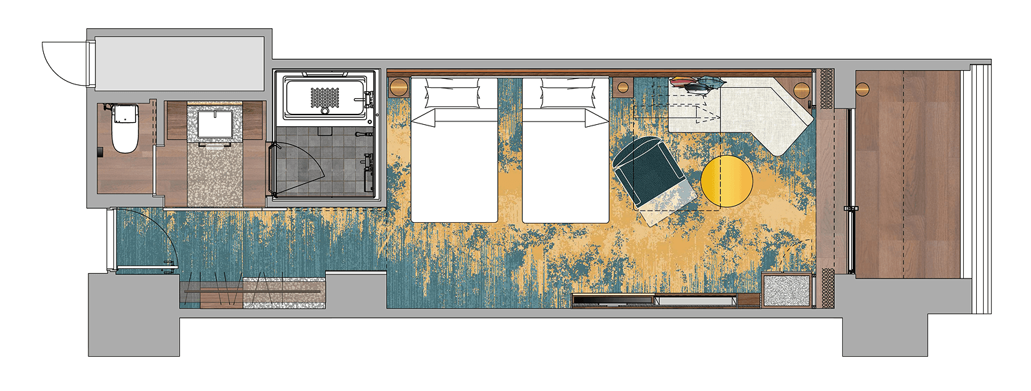 12階および13階、北側に位置する客室は、3名様までご利用いただける上質な空間です。高層階ならではの開放感あふれる眺望と、心地よく吹き抜ける爽やかな風を存分にご堪能ください。