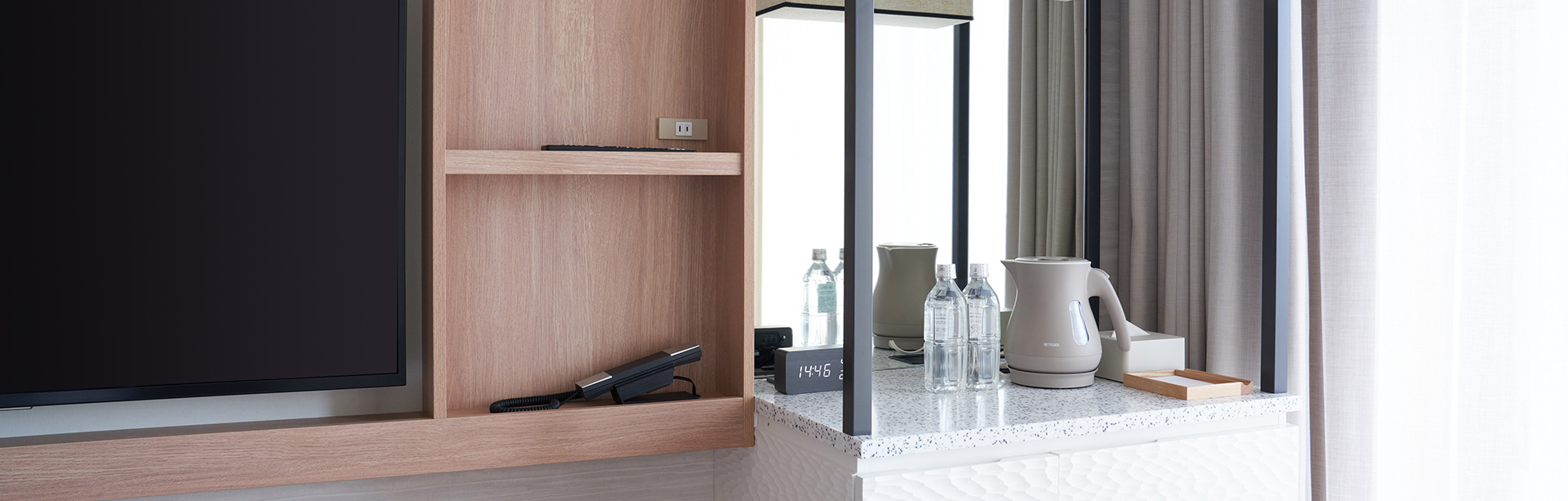 スーペリアフロア南側の3・4F角部屋。トランドルベッドのご使用により3名さままでのご利用が可能です。さわやかな海風を感じながらのご滞在をお楽しみください。