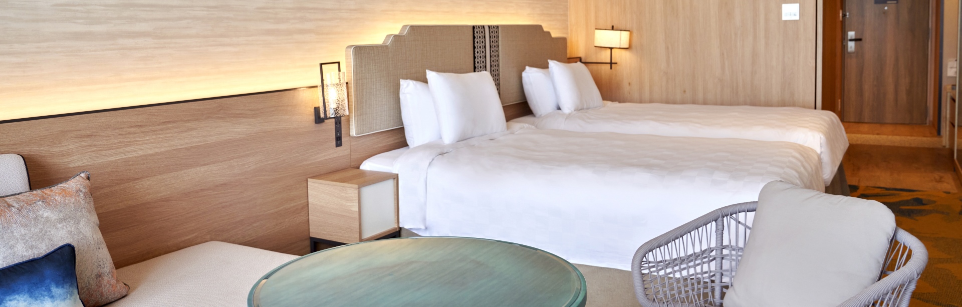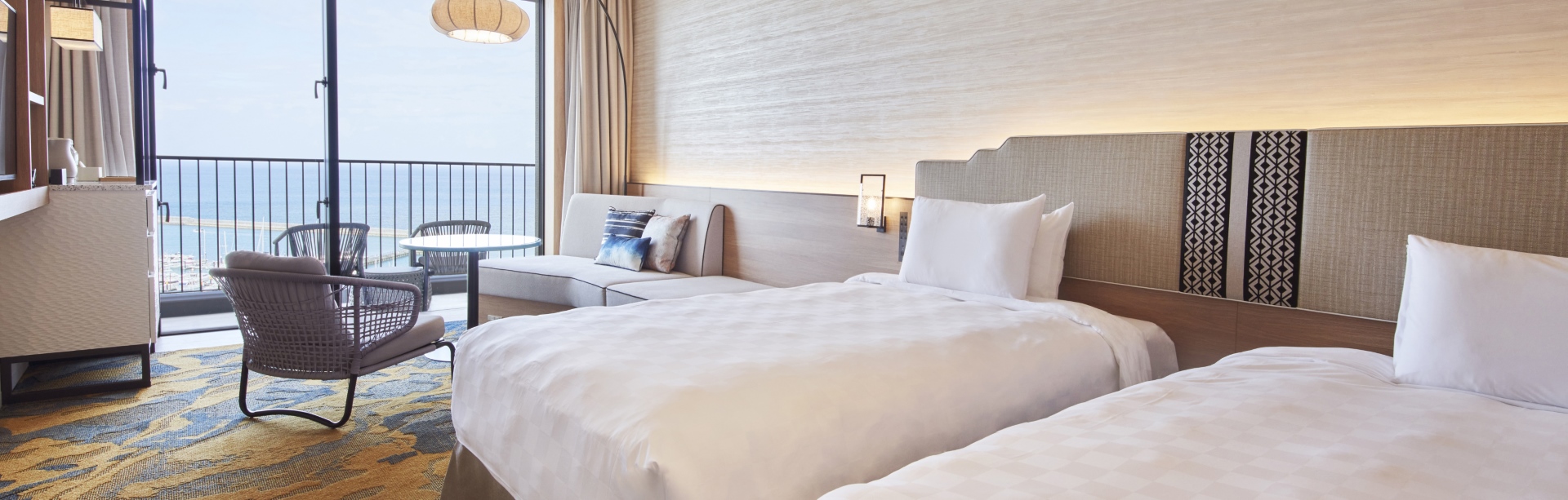 3名さまでのご利用も可能なスーペリアフロア5~11Fの客室。雄大な景色とさわやかな風を存分にお楽しみください。
