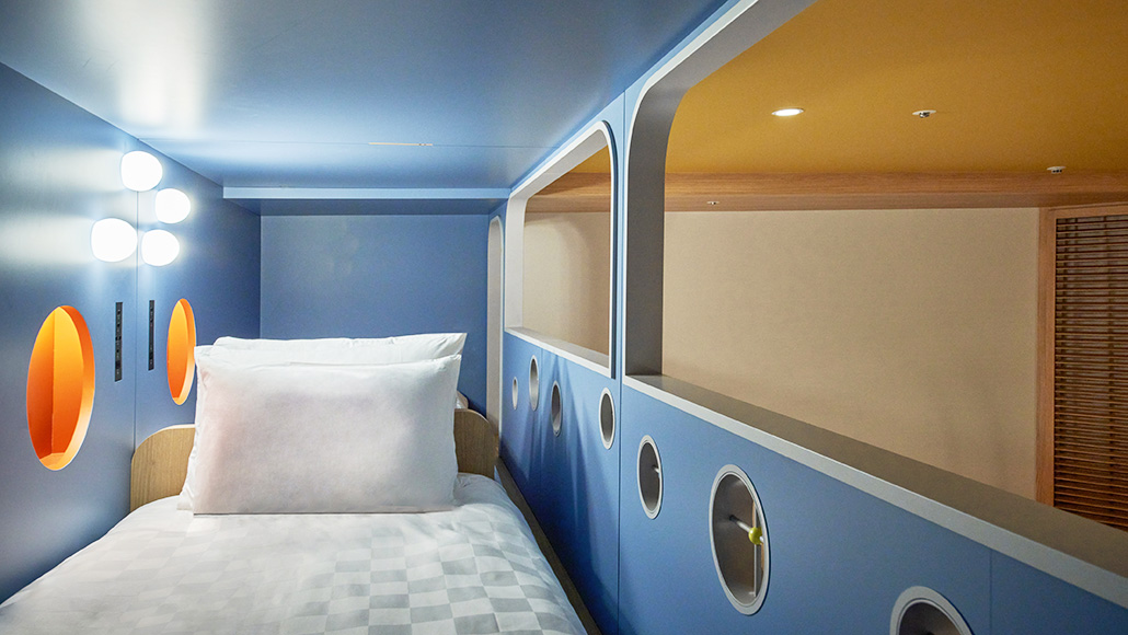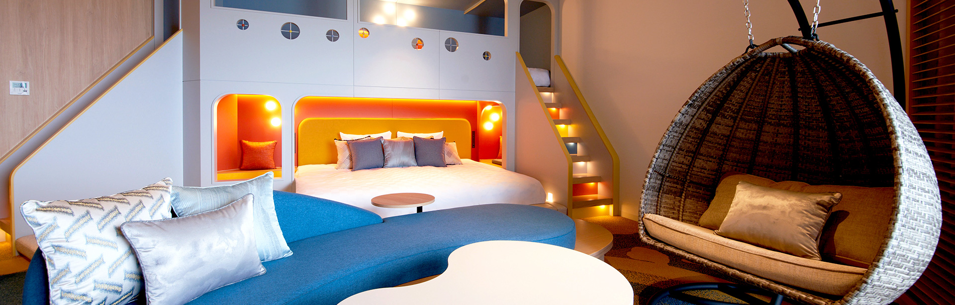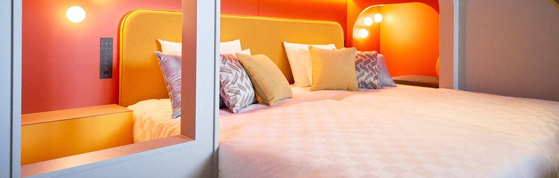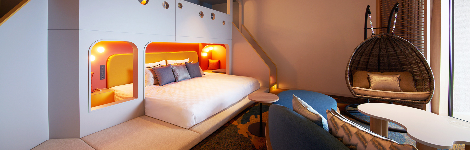 スーペリアフロア5~9Fに位置するツインベッドのフロアの中二階に2段ベッドを備えた、お子さま連れのファミリーに最適な客室です。