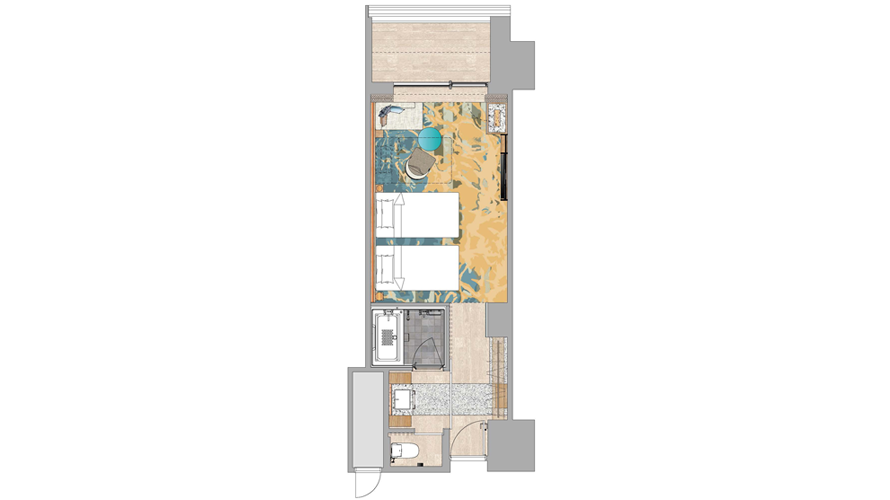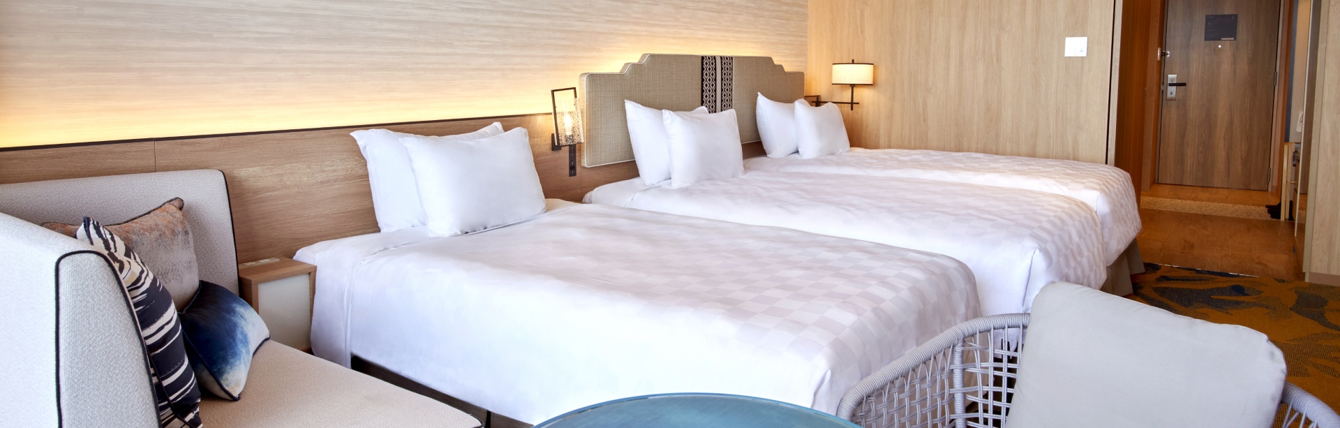 スーペリアフロア南側 3・4Fの客室です。トランドルベッドのご使用により3名さままでのご利用が可能です。さわやかな海風を感じながらのご滞在をお楽しみください。