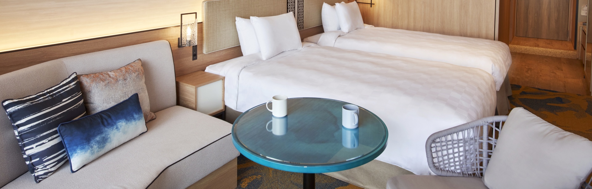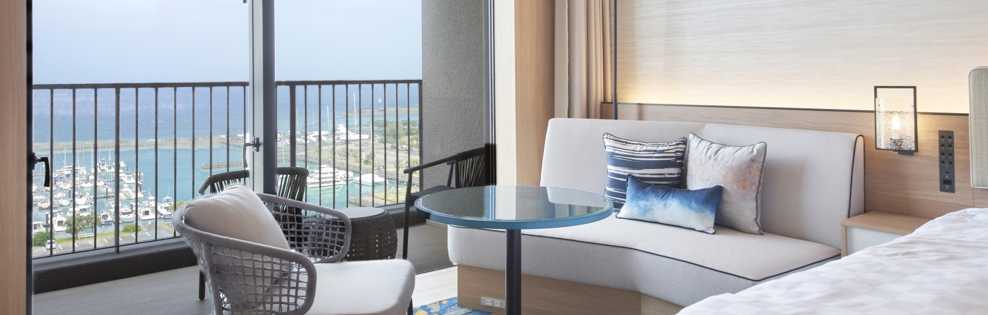 スーペリアフロア南側の客室。正面に水平線を望む雄大な景色をお楽しみください。