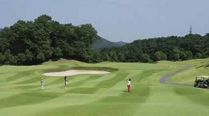 琵琶湖や比叡山を望む、なだらかな丘陵地にあるコースで、女子プロゴルフトーナメントが開催されています。