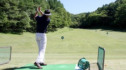 フロートボールを使用し、池に向かってショットする100打席の練習場です。