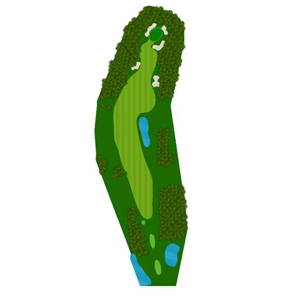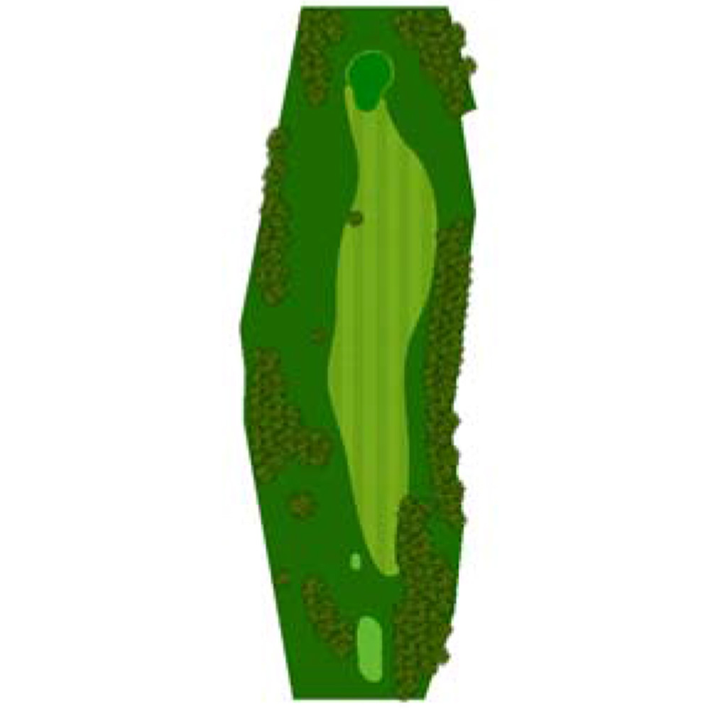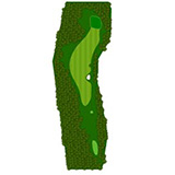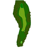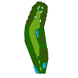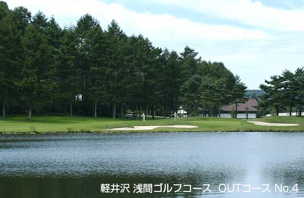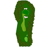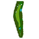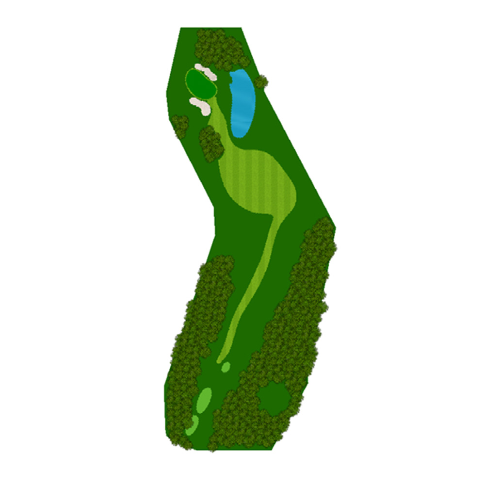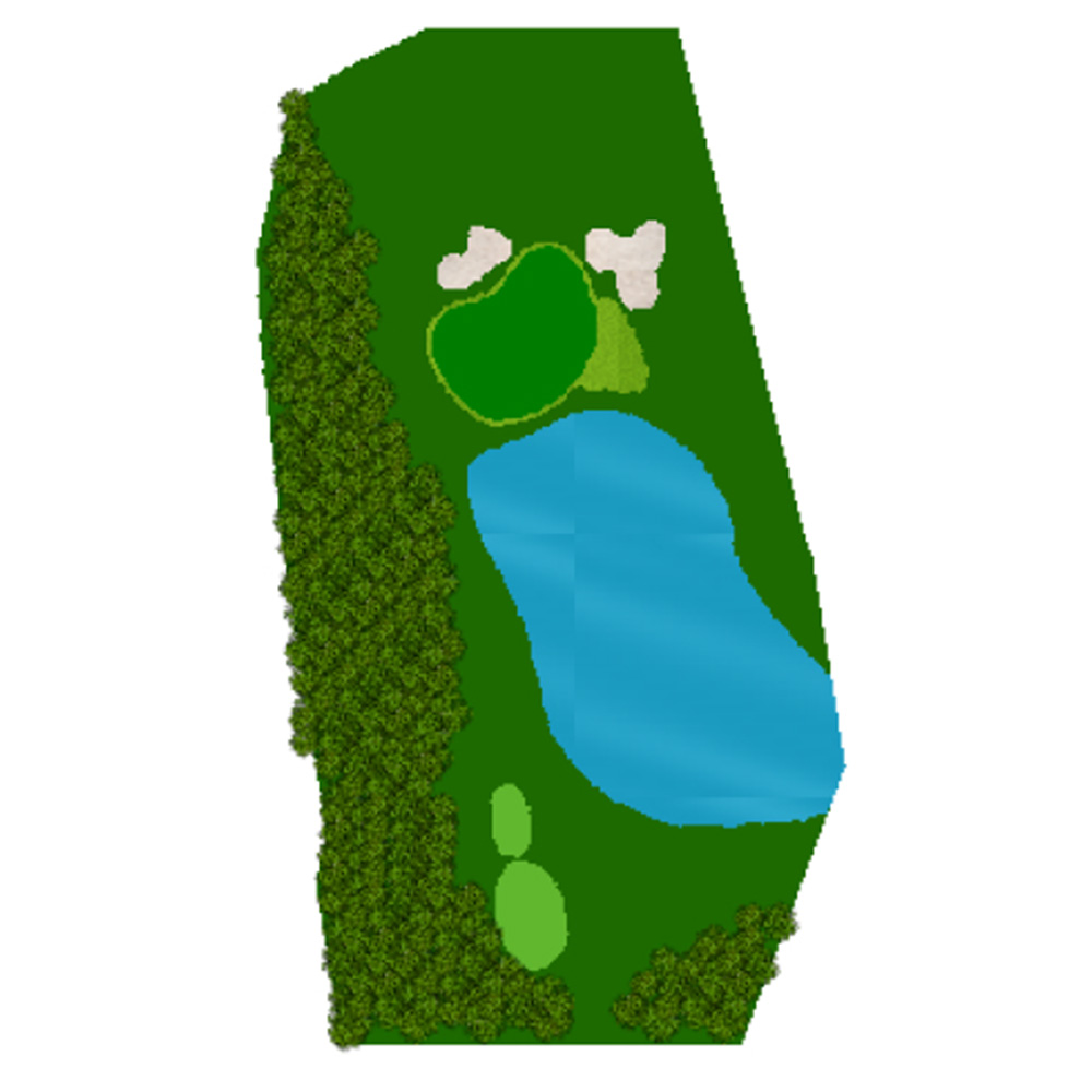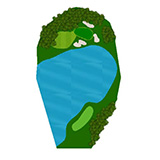 池越えのパー3ホール。目の前に広がりグリーンもガードバンカーに囲まれている。風の影響を受けやすいため、クラブ選択がカギ。