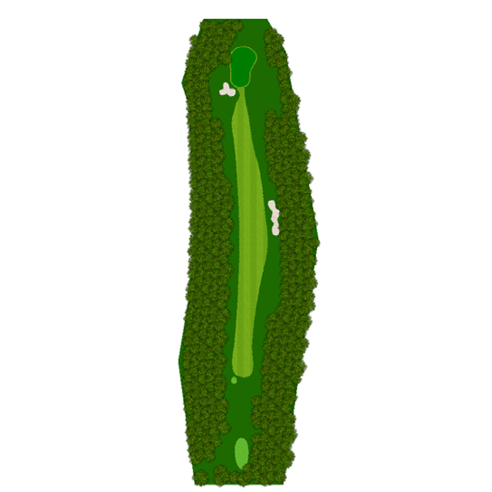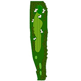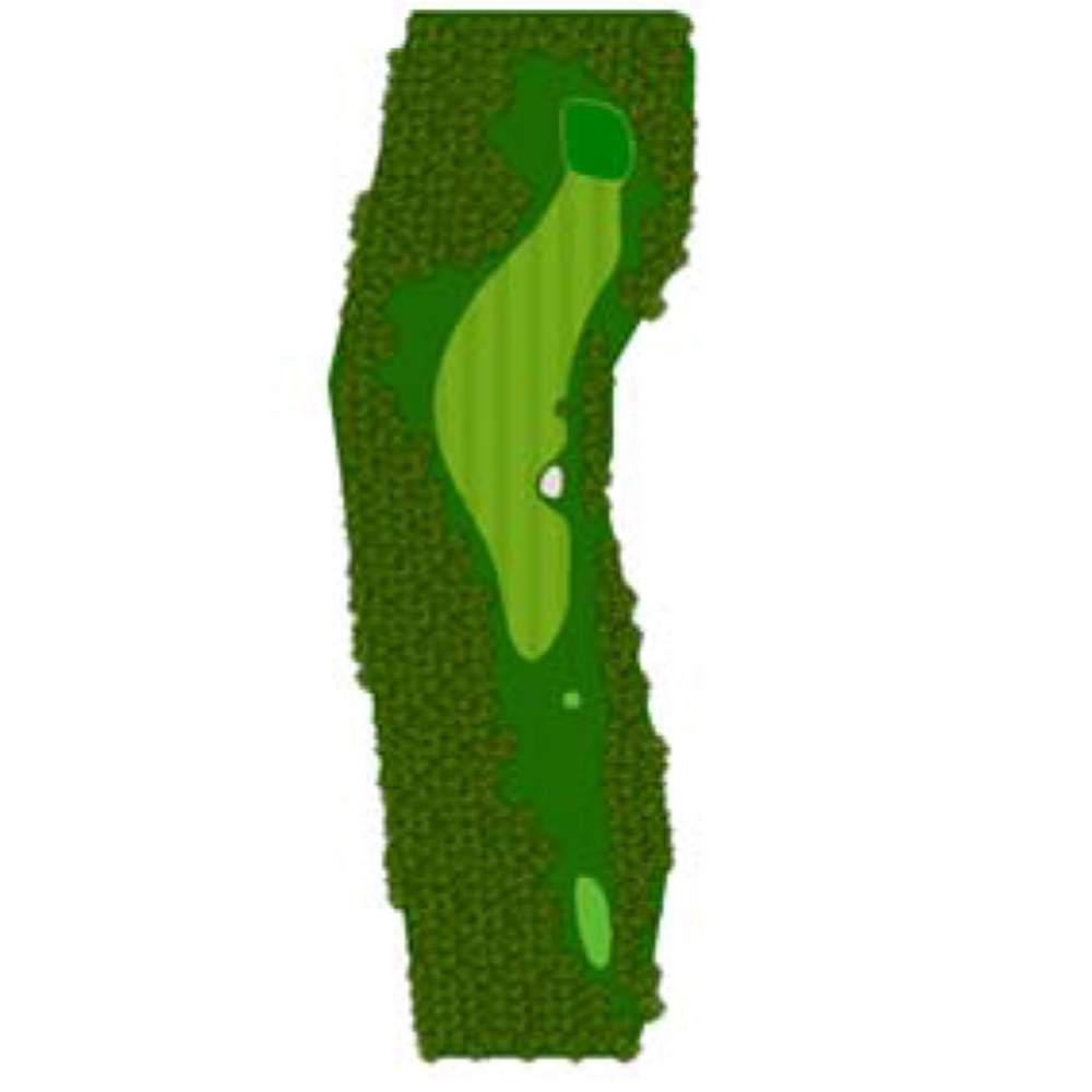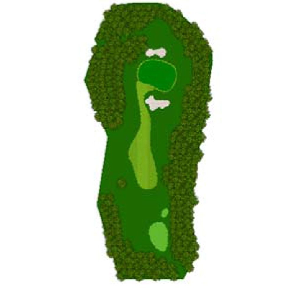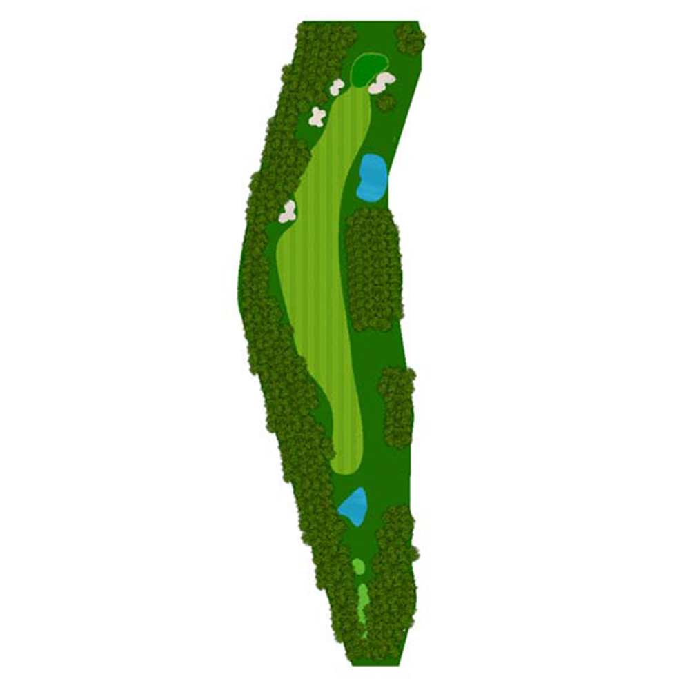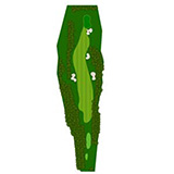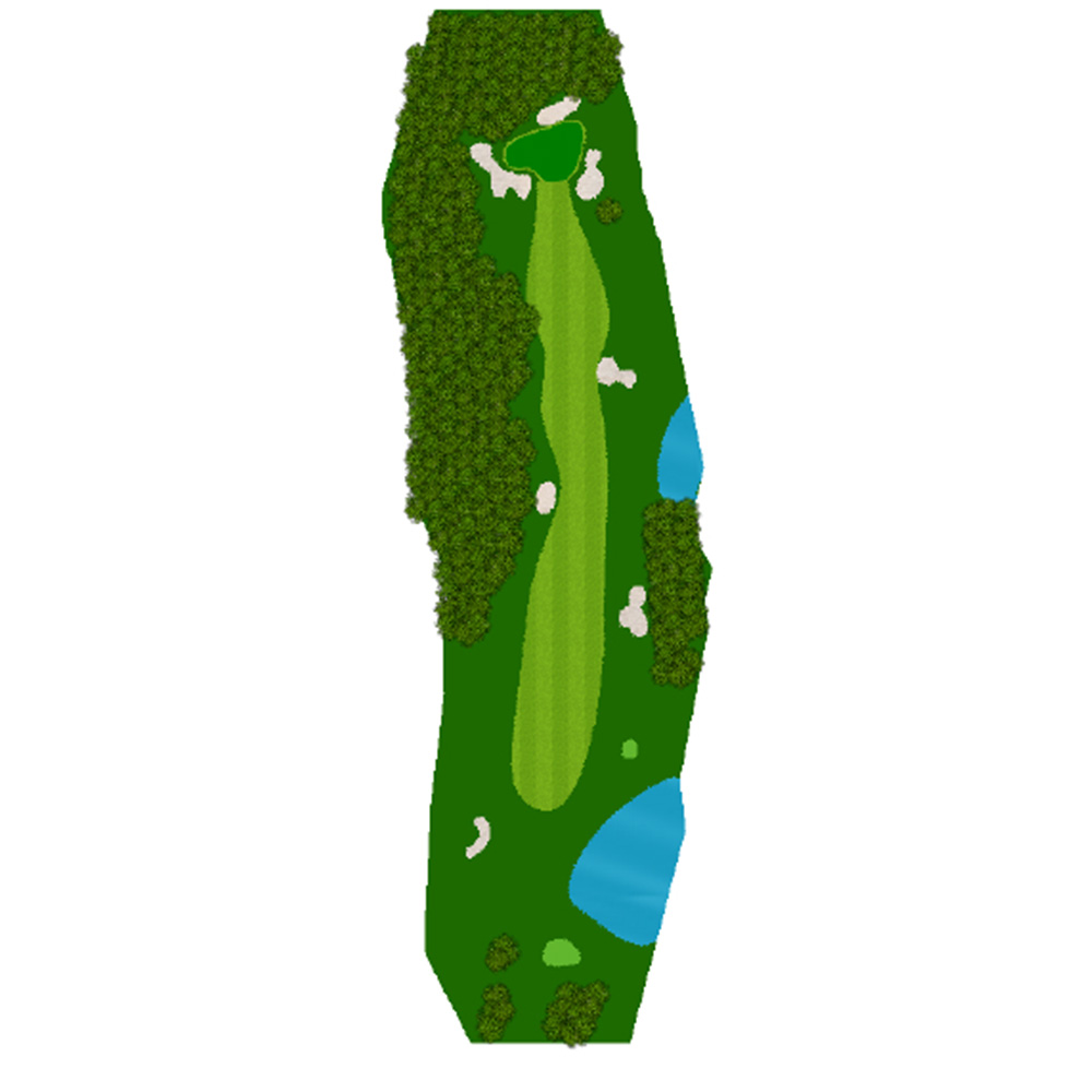 池越えのパー3ホール。目の前に広がりグリーンもガードバンカーに囲まれている。風の影響を受けやすいため、クラブ選択がカギ。